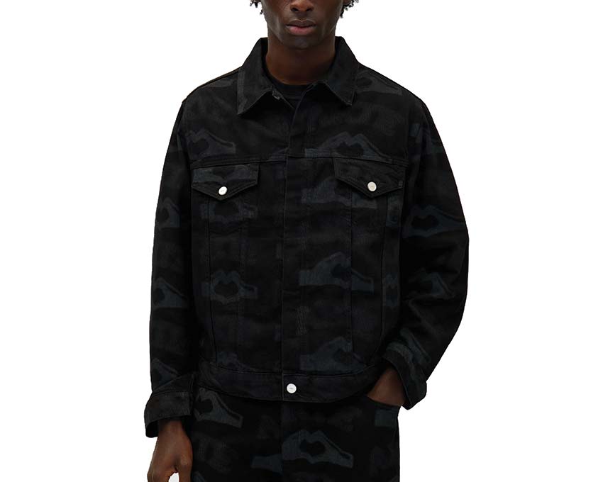 Fabriquée en coton de qualité supérieure, cette veste est orné d'un motif saisonnier dans les tons gris. La veste noire a une coupe décontractée et est dotée d'une fermeture à bouton caché, de deux poches sur la poitrine et de deux poches sur les côtés. Complétez le look avec le pantalon Heart Printed assorti. Complétez le look avec le pantalon imprimé cœur assorti.