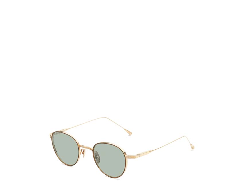 Fabriqué à la main au Japon Construction en bêta-titane japonais Monture plaquée or 14K Laque du pourtour de l'œil de tortue Design de l'embout signature Pont gravé en bêta-titane Branches en bêta-titane d'inspiration vintage et bord d'œil personnalisé de 3,5 mm d'épaisseur Plaquettes de nez en titane personnalisées Lentilles solaires Base 2 CR39 Green G13 Traitement antireflet à l'arrière 100% de protection UV