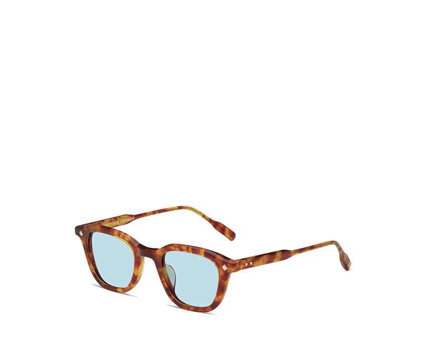 Fabriqué à la main au Japon Acétate japonais beige vintage Finition en métal plaqué or 14 carats Branches d'inspiration vintage avec bordure antidérapante Charnière à 5 broches rivetée sur mesure avec gravures Monture des branches avec gravure signature Créations signature Lunetterie Générale Verres solaires CR39 bleus en base 2 Traitement antireflet arrière Protection 100% UV