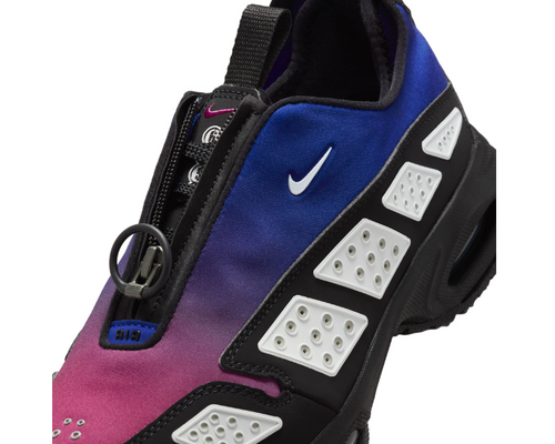 Les Air Max SNDR, en avance sur leur temps en 1999, reviennent avec un design revisité tout en conservant le même esprit d’innovation. Avec un maintien sûr au niveau du talon et un renfort zippé qui dissimule les lacets pour un style plus épuré, ces sneakers continuent de bousculer les codes. Lorsque vous ouvrez la fermeture éclair, le nombre 6453 apparaît, un clin d’œil aux bureaux de Nike qui forme N-I-K-E sur un clavier numérique. L’empeigne façon néoprène est douce et flexible, tandis que les empiècements réfléchissants et les zones de ventilation améliorent la respirabilité. L’amorti Max Air au talon et à l’avant-pied offre un confort et un dynamisme supérieurs à chaque foulée.